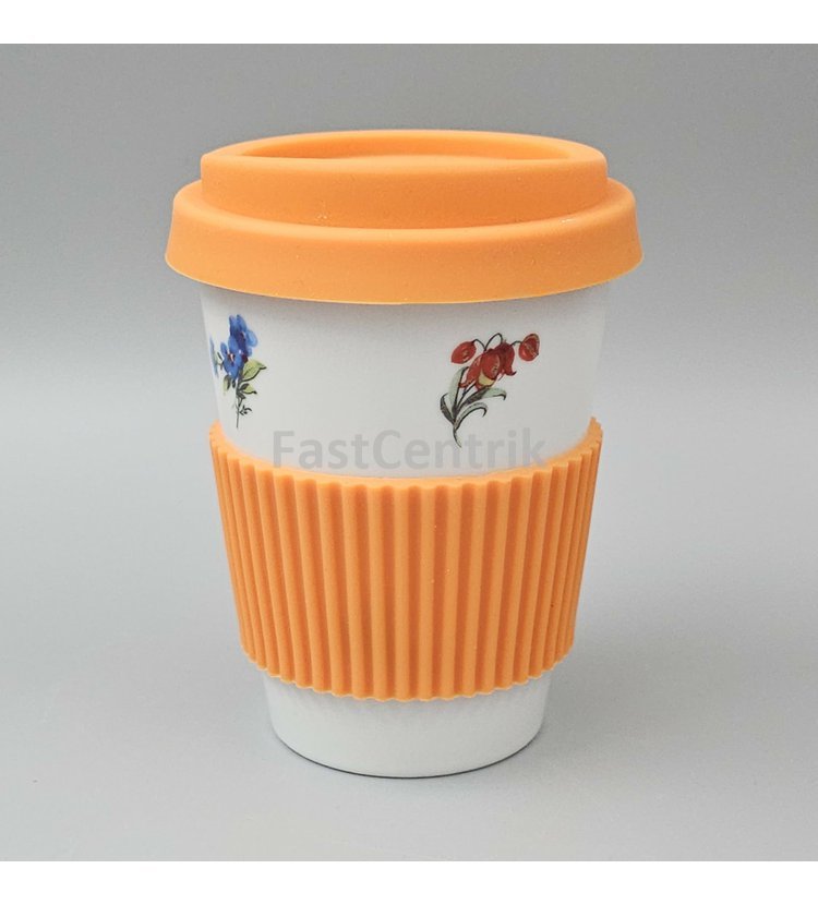 Porcelánový hrnek cestovní TO GO se silikonovým víčkem